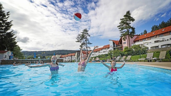in den beheizbaren Außenschwimmbad - Außenpool im Lipno Lake Resort Areal (Juni bis September).
